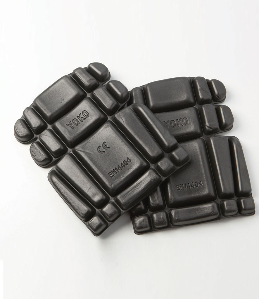 Polyethylene. Made from pressure absorbing foam. Lightweight. Fits all Yoko knee pad trousers.
